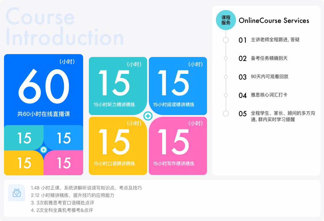 雅思托福类直播课回放周期为结课后90天;GRE/GMAT类直播课回放周期为180天。支持有效期内免费无限次数观看,请在有效期内完成学习。